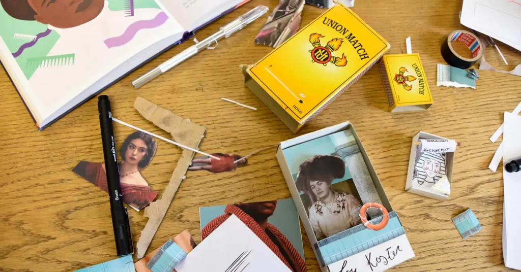 Par le découpage, le collage et l’assemblage de photos, textures et couleurs, les participant·e·s vont créer des portraits uniques de grandes figures féminines oubliées. Le résultat tiendra dans une boîte d’allumettes mais les histoires redécouvertes, elles, sont immensément fascinantes.“