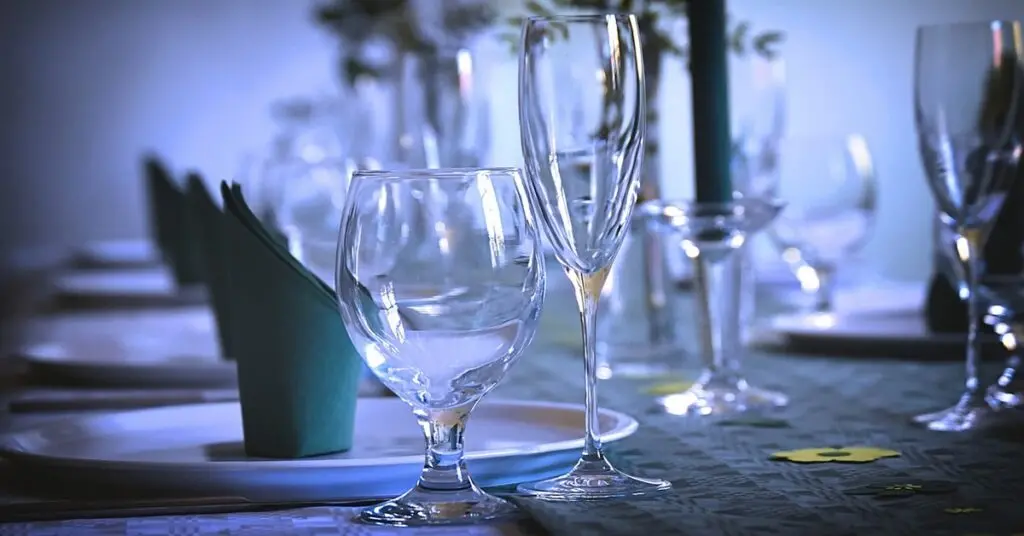 S’il y a un seul verre, il est placé à droite, au-dessus de la pointe du couteau. S’il y en a plusieurs, le plus petit se trouve à droite, et on les aligne ensuite vers la gauche (éventuellement un peu en diagonale – voir plus bas). On a donc de gauche à droite le verre à eau, suivi du verre à vin rouge et enfin le verre à vin blanc.