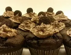 100 g de chocolat noir; 80 g de beurre; 18 Oreos; 60 g de sucre brun; 125 g de farine; 20 g de cacao; 2 sachets de bicarbonate de soude (Dr Oetker « Natron »); 1 sachet de levure chimique; 10 cl de lait et 2 oeufs entiers.