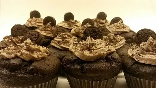 Placer des paniers en papier dans un moule à cupcakes. Déposer un Oreo au fond et recouvrir de pâte.
