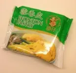 1/2 paquet de feuilles de woton (en vente surgelé dans les boutiques asiatiques); 400-500 g de haché de porc (que l’on peut remplacer par de la volaille, du veau ou du boeuf suivant le goût), 200 g de scampis, 20 g de sucre, 1 c à soupe de poivre noir concassé, 10 g de sel, 100 g de champignons chinois réhydratés.