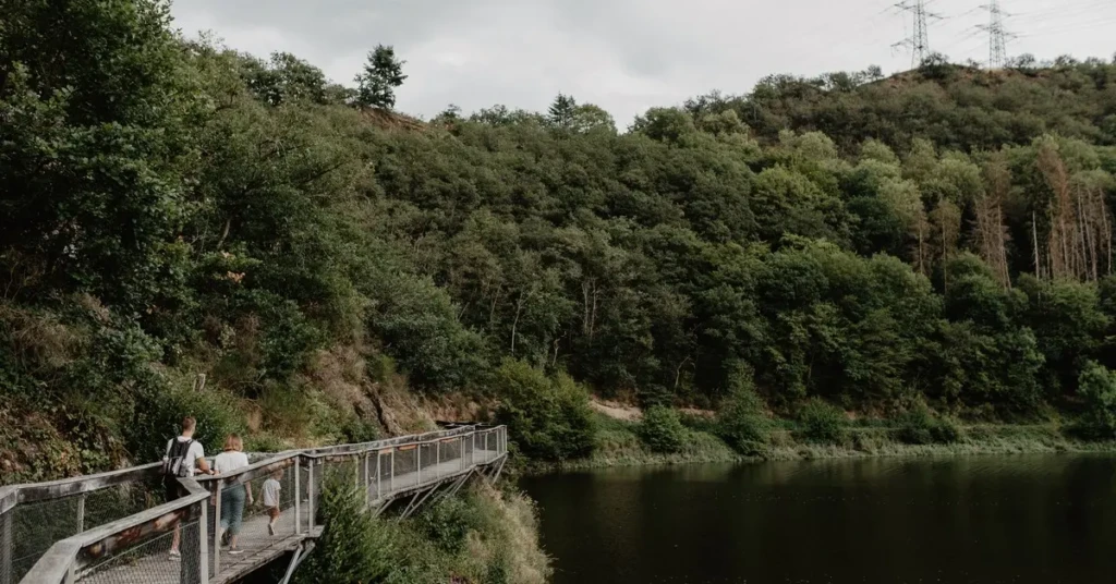 Découvrez la vallée de l’Our entre Vianden et Stolzembourg. Ce beau chemin spécialement aménagé passe en partie sur des passerelles en bois directement au bord de la roche.